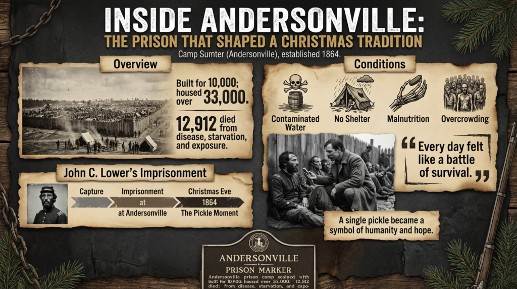 According to family accounts, passed down for decades, a Confederate guard noticed Lower’s deteriorating condition on a bleak Christmas Eve. Perhaps the guard saw a young man far from home. Perhaps hunger softened even the hardest wartime lines. Whatever the motivation, he offered Lower a simple pickle—half eaten, yet wholly meaningful.