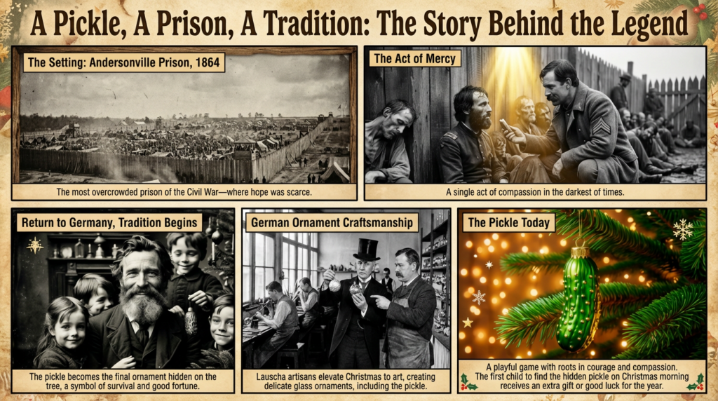 Unlike many Christmas legends, the story of the pickle does not hinge on magic or mythological figures. Its power comes from real people and real history:
